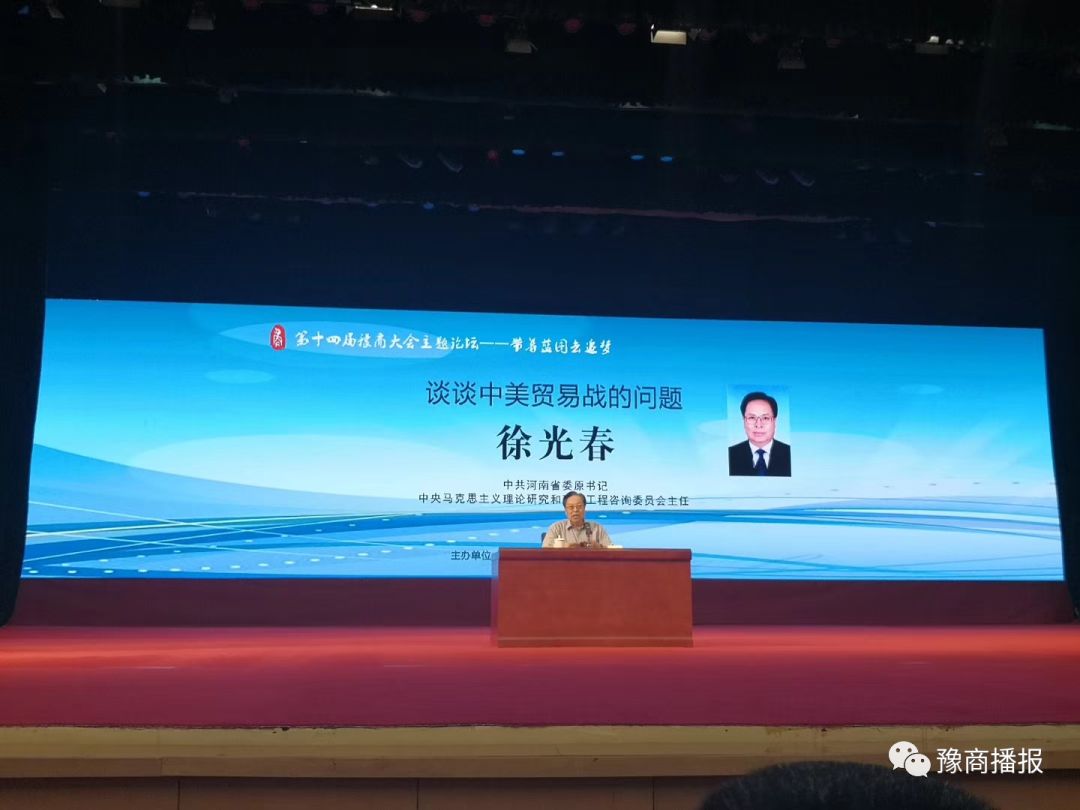 河南省委原书记徐光春同志做题为《谈谈中美贸易战的问题》的演讲,为广大 解读形势、指明方向。