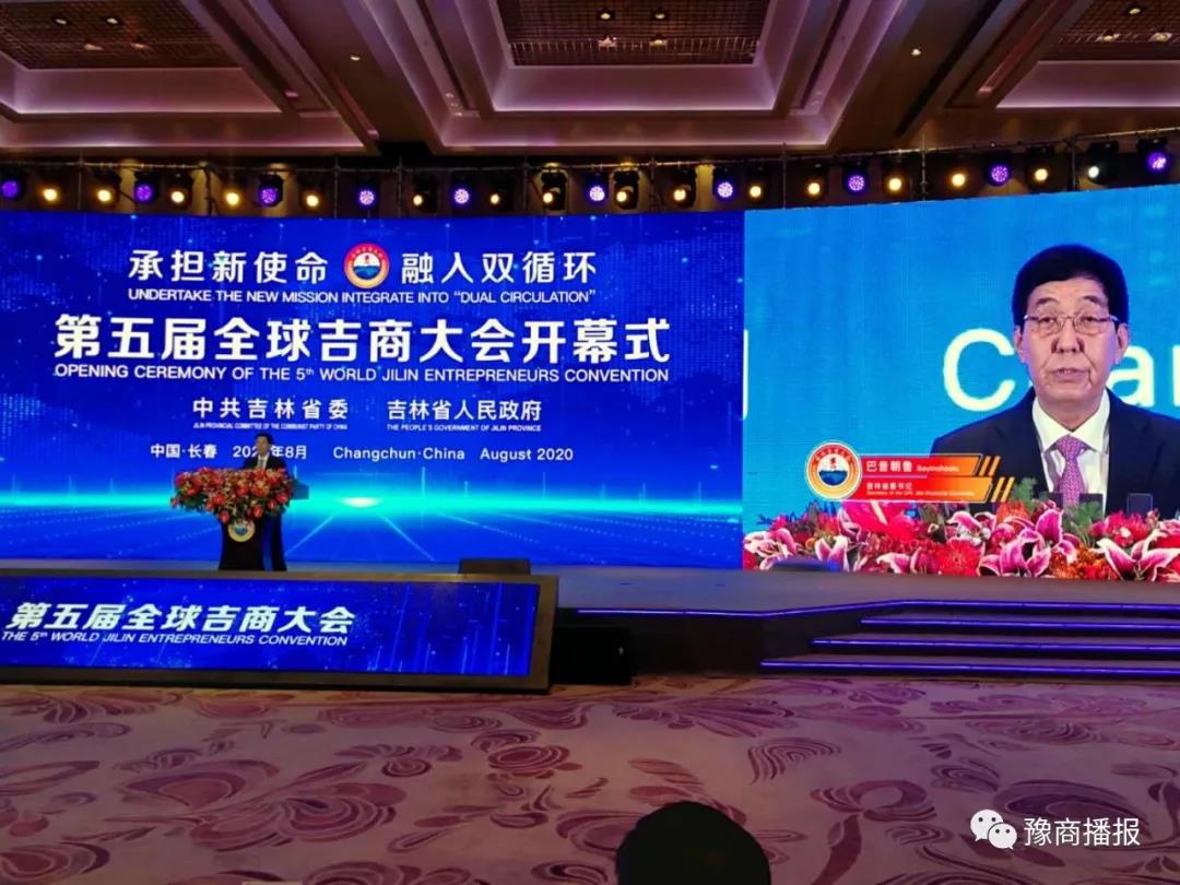 27日上午9:00举行了第五届全球吉商大会开幕式,开幕式由吉林省人民政府省长景俊海主持,吉林省省委书记巴音朝鲁做重要讲话。5位企业家代表发言。最后举行了“吉商荣耀”表彰颁奖和签约仪式。吉林省河南商会被授予“吉商优秀商会组织”称号。