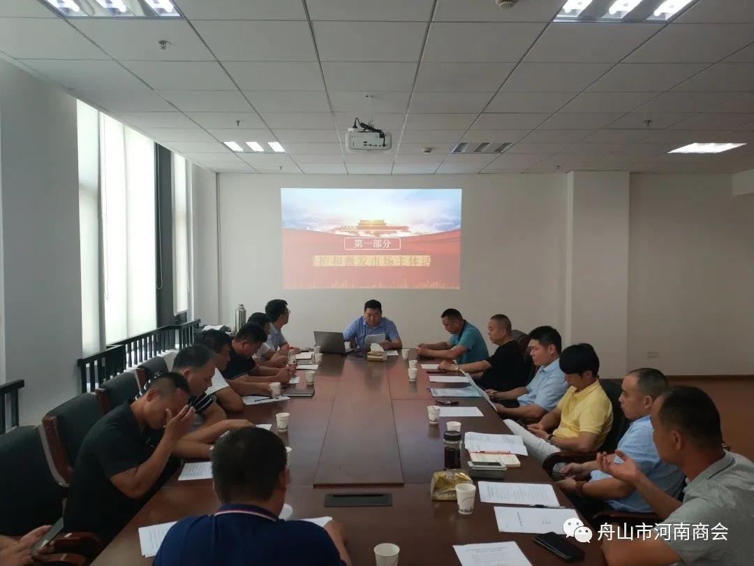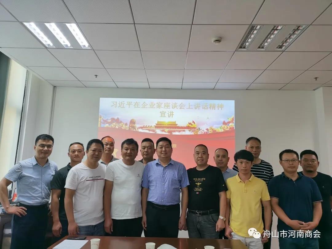为深入贯彻学习习近平总书记在民营企业家座谈会上重要讲话精神。8月30日,舟山市河南商会组织召开学习贯彻习近平总书记在民营企业家座谈会上重要讲话精神宣讲会,商会邀请舟山市工商联副主席陈先彬出席会议并进行宣讲。舟山市河南商会会长郑德友、舟山市河南商会党支部书记邹治斌、舟山市河南商会执行会长李树勋、舟山市河南商会常务副会长白建军、舟山市河南商会副会长魏光华、舟山市河南商会副会长杨志刚等二十余位商会会员参加此次宣讲会。舟山市河南商会秘书长张春雷主持会议。