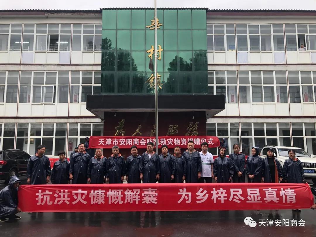 7月29日,天津市安阳商会向安阳县辛村镇捐赠物资举行现场捐赠仪式。此次商会捐赠的包括两车价值共26万元的物资。