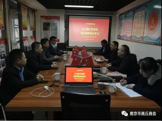 11月17日,南京市商丘商会党支部召开支部党员大会,会议期间组织学习了《中国共产党第十九届中央委员会第六次全体会议公报》,与会人员围绕学习党的十九届六中全会精神进行了交流。党支部书记李清华总结到:党的十九届六中全会是在我们党百年华诞的重要时刻,在“两个一百年”奋斗目标历史交汇关键节点上召开的一次重要会议。作为党员和企业家,我们要深刻理解全会精神的丰富内涵与核心要义,自觉把思想和行动统一到全会精神上来,不忘初心、践行使命,为全面建设社会主义现代化国家、夺取新时代中国特色社会主义伟大胜利、实现中华民族伟大复兴的中国梦作出新的更大贡献。