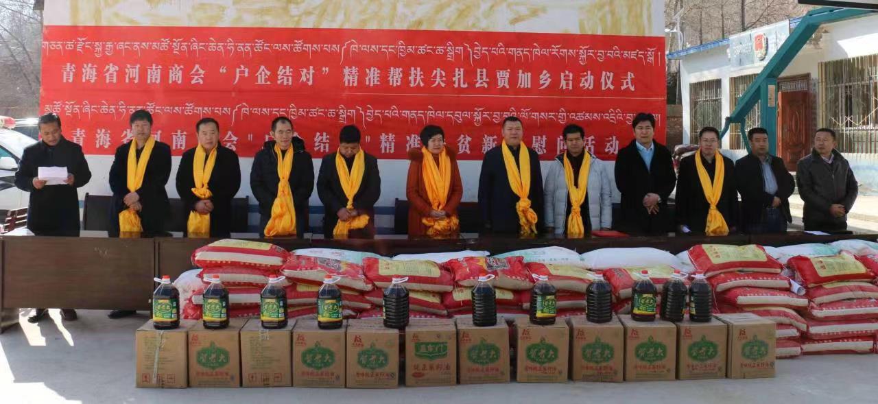 2018年和2019年两次赴尖扎县贾加乡举行“户企结对”帮扶启动仪式暨春节慰问活动。商会代表与贾加乡贫困户代表签订了“户企结对”精准扶贫结对卡,现场为贾加乡深度贫困户发放了价值5万元大米、面粉、菜籽油和学生学习用具,并向6户因病残因灾深度贫困户发放3000元慰问金。