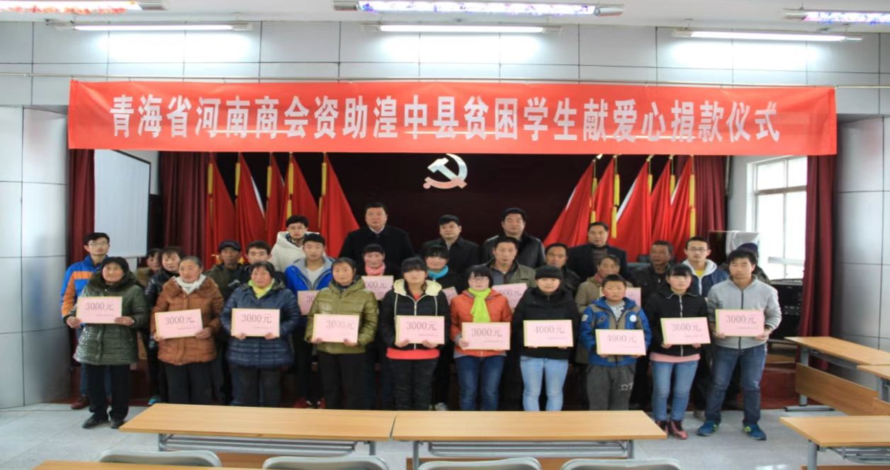 商会的企业家们把资助贫困学生完成学业,作为教育援助、智力扶贫的重要内容,慷慨解囊,坚持不懈。商会及会员企业每年都通过各种活动捐资助学。5年来,先后资助200多名学生,用于捐资助学的款物达160余万元,为帮助贫困学生顺利完成学业出资3万元携手《西海都市报》举办“爱心鞋垫 情暖助学路”公益活动,义卖峡门镇中心学校学生家长制作的纯手工鞋垫。组织人员专程赴民和县峡门镇中心学校为20名贫困学生每人发放800元的助学金,另外还资助2名贫困大学生圆了大学梦,提供助学金10000元。积极参加“法律援助进校园”图书捐赠活动,捐资10008元,图书508套册,商会还为湟中县拦隆口镇峡口村初中学生张文德等16名学生捐助5万元。常务副会长侯国灵的西宁国灵中学每年为贫困学生减免学费达10万元以上。
