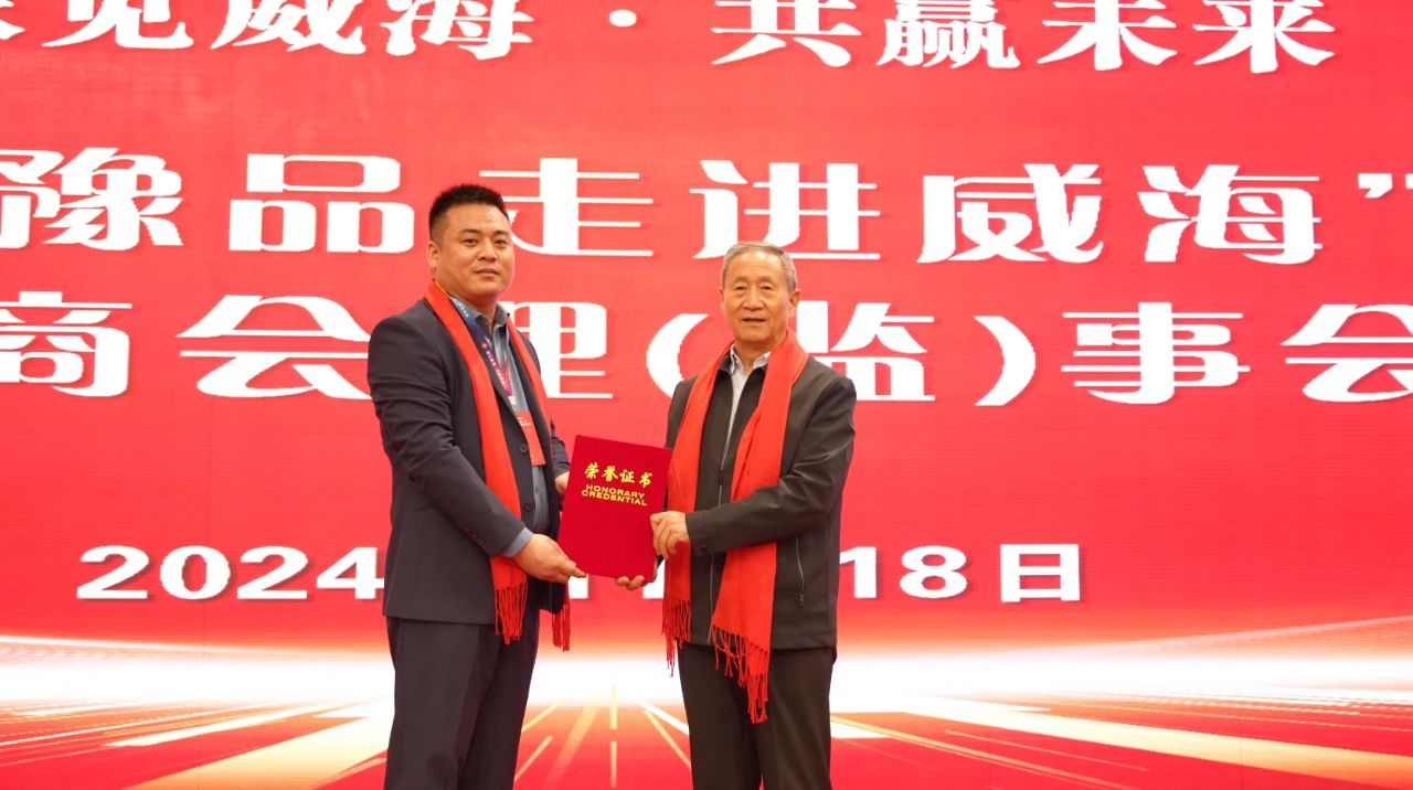 豫品走进威海”暨威海市河南商会理(监)事会就职庆典活动,向商会的成功换届表示祝贺。