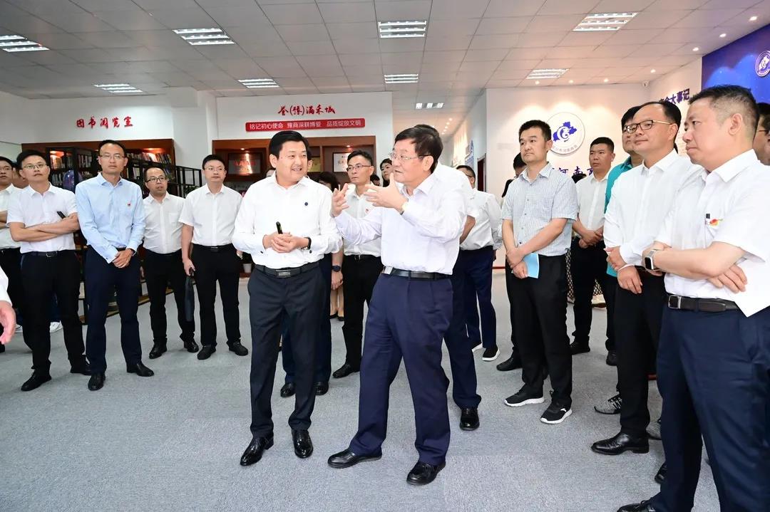 李永宪会长带领徐书记一行参观了科技孵化器、商会文化及党群服务中心建设,介绍了万纳神核控股集团企业情况及商会会员科技发展孵化器、商会委培班、智信管理、育(豫)苗行动、河南商会“四信”建设等内容,重点介绍了北斗七星格局的商会工作模式;党务红领、秘书长刘高宪介绍了数字党建和商会经济情况,商会的各项工作都得到了徐书记、陈书记的高度肯定和赞扬,并交待指导部等负责同志要总结、宣传好河南商会的创新实践经验。
