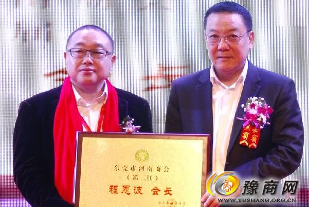 东莞市河南商会会长程恩波在致辞中首先向在百忙中莅临庆典大会的各级领导、各位嘉宾、社会贤达、广大乡亲们表示热烈的欢迎和衷心的感谢!他说,自商会成立以来,在首届理事会班子以及广大会员的共同努力下,紧紧围绕"团结、发展、奉献、共赢"的办会宗旨,求真务实,做了很多新的尝试,诸如积极组织、承办各种商务考察活动数十次,扶危助困,积极为会员和在莞河南老乡维权......,充分体现了河南人的大爱和团结奉献精神,得到了东莞市委、市政府及有关部门的充分肯定和认可!2014年商会获得东莞市十大慈善人物第一名;2015年商会个人获得东莞好人及东莞市道德模范;2016年的东莞市社工委举办的优秀异地商会的积分制评比中,河南商会被评为省级异地商会第二名;2017年商协会优秀人物评选时河南商会又有十人进入评选并获奖,获奖人数之多,为各商协会之最。