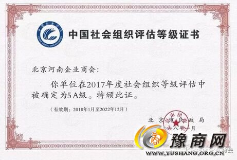 非常感谢北京市民政局社会团体管理办公室、评估专家组对北京河南企业商会评估工作的肯定和鼓励,感谢商会全体会员的积极参与和大力支持,北京河南企业商会才有幸荣获“5A级社会组织殊荣”,北京河南企业商会非常珍视此次殊荣,今后将以更加优异的成绩回报社会各界朋友对北京河南企业商会的关心支持和厚爱。
