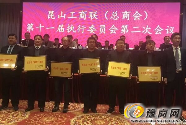 砥砺进取捷报传,奋发有为勇当先!2018年2月1日,皇冠国际会展酒店六楼丰乐郡会议厅—昆山市“优秀商会”、“四好商会”表彰大会现场传来喜讯:我会荣获昆山市“四好商会”荣誉称号!可喜可贺!此次大会,市工商联隆重表彰了昆山市首批10家“优秀商会”和6家“四好商会”。昆山市河南商会从众多商(协)会中,脱颖而出,荣获“四好商会”荣誉称号。会长王军、秘书长王永萍、常务副会长张全玲、戴利欣,副会长张前参加表彰大会,由会长王军上台领奖。