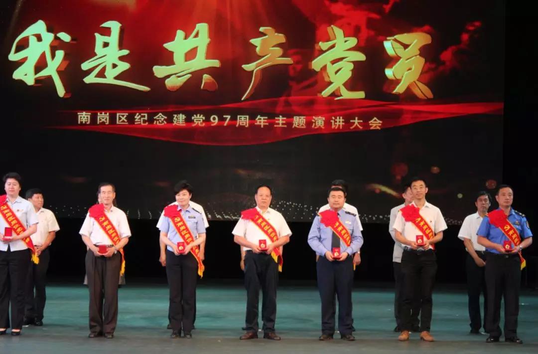 2018年6月28日下午,哈尔滨少年宫举行南岗区纪念建党97周年“我是共产党员”主题演讲大会,纪念党的生日,黑龙江省省委组织部、哈尔滨市委副书记艾立明、哈尔滨市两新组织工委、南岗区委副书记、区长博岩、组织部长曹凤瑞同志及两新组织工委书记于洋同志和1200多名各条战线党员代表出席大会,大会介绍了各条战线上的先锋模范人物,先进集体典型事迹,赢得阵阵掌声!大会举行为“先锋岗位共产党员”受勋仪式,黑龙江省委组织部、哈尔滨市委组织部的领导为十名先锋模范共产党员授勋,黑龙江省河南商会党委书记贾银增荣获勋章!这不仅是贾银增同志的光荣!也是河南商会全体党员的光荣!是黑龙江省河南商会的光荣!