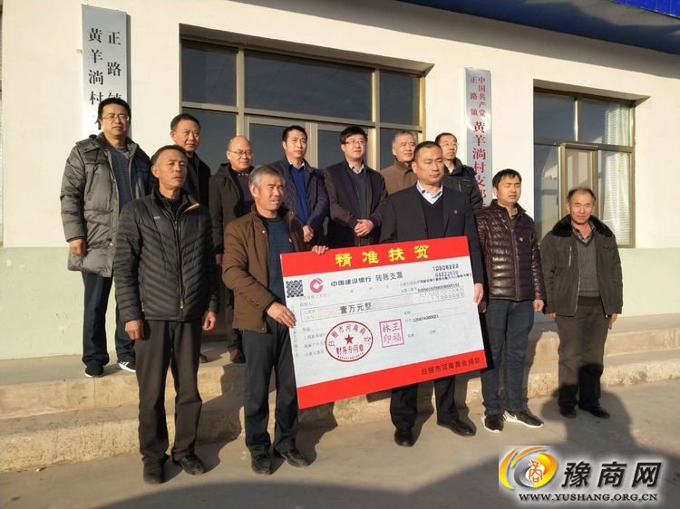 白银市河南商会党支部与黄洋淌村委在市工商联领导见证下,做精准扶贫对接,白银市河南商会10000万元扶贫资金交付了黄洋淌村支部书记。