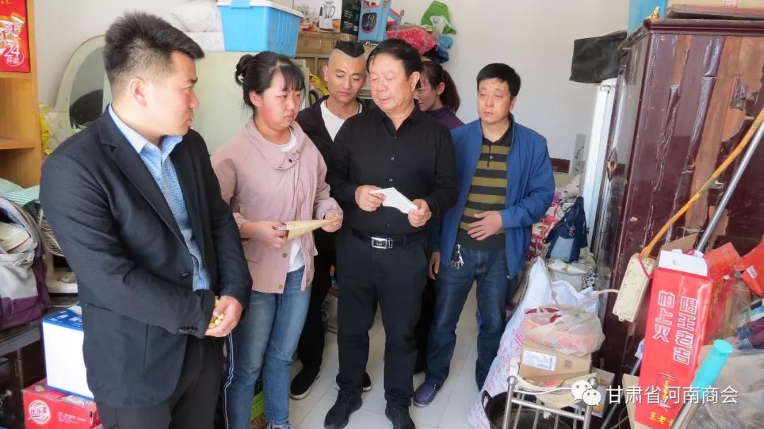 5月11日下午,甘肃省河南商会七里河办事处主任王汉生、副主任申莹光、兰州易林中泽建筑工程有限责任公司董事长刘林林、商会办公室主任卢亚楠一行前往七里河区刘家堡陈智华的家中对其家属进行尉问。