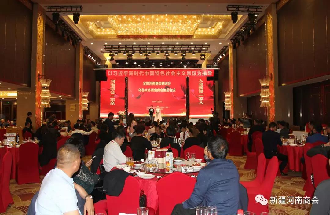5月16日17时30分,全疆河南商会联谊会暨乌鲁木齐河南商会换届庆典在海大酒店隆重举行。乌鲁木齐市民政局副局长曹鲁俊,乌鲁木齐市工商联副主席马红燕;北京河南商会党支部书记王群生一行4人;原新疆军区副司令李新光等老领导;来自河南大型企业的代表;新疆河南商会会长朱军、支部书记刘涛、名誉会长陈怀亮、魏士然,执行会长高东升、马红军,秘书长魏建军,常务副会长陈建勋、樊永根、赵来鲜、穆利可、郭健、杨学成、乔永星、张华、刘志愿、王红霞、马庆,副会长段晓娟、刘新荣、韩位东、党星锋等,办公室主任徐汝灵、副主任杨宁;昌吉州河南商会会长刘敏海、巴州河南商会会长张卫阳、喀什河南商会会长陈勇、塔城河南商会会长李玉红、霍尔果斯河南商会会长于成忠、第二师河南商会会长申玉霞、第五师河南商会会长张建矿、第十二师河南商会会长贾辉;来自全疆河南商会的领导共280多人参加了大会。