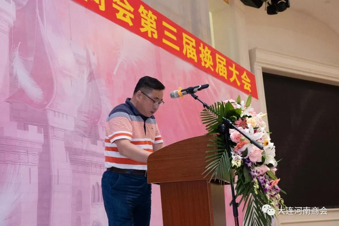 他还讲到:作为新一届会长,在今后的工作中,我将以身作则,恪尽职守,求真务实,奉献为先,以高度的使命感和责任感,按照章程确定的目标和任务,认真履行义务,不断总结经验,扬长避短,开拓进取,锐意创新,积极探索,做好做强商会的各项工作。我也要求新一届理事会认真贯彻落实党的各项方针政策,积极融入国家“一带一路”战略、东北老工业基地振兴发展规划和大连自贸区的发展建设,不辜负广大会员的信任和重托,不断学习、不断提高、不断发展,在率先垂范的基础上积极引导会员牢固树立商会的发展理念和服务宗旨,力所能及地帮助广大会员把企业做实、做强、做好、做长。积极回报社会,为豫连两地经济建设多做贡献。努力塑造商会形象,赢得商会荣誉,打造商会品牌,把商会搞得有声有色!这一届理事会将决不辜负豫连两地领导的重托和广大会员的期望,将齐心协力把大连河南商会办成党和政府放心、主管领导部门满意、广大会员信赖的社团组织。