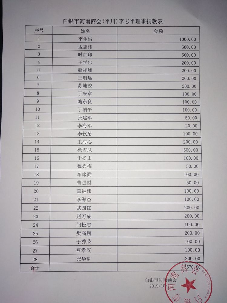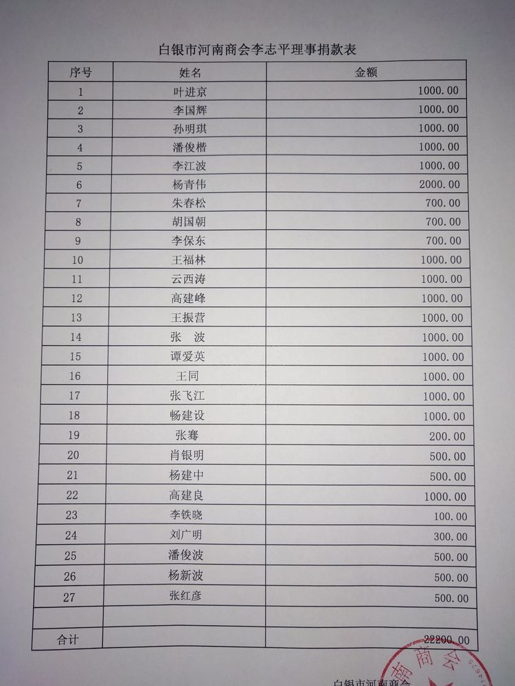 白银区域会员捐款名单;