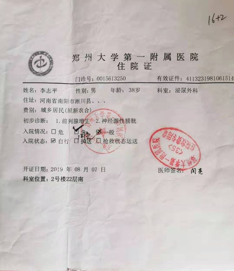 李志平住院证