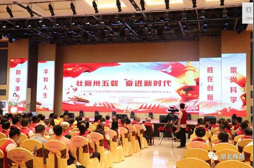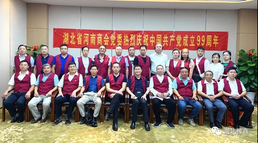 湖北省河南商会党委庆祝中国共产党成立99周年大会于2020年7月1日上午在武汉和平大世界大舞台杨园国际会议中心召开。