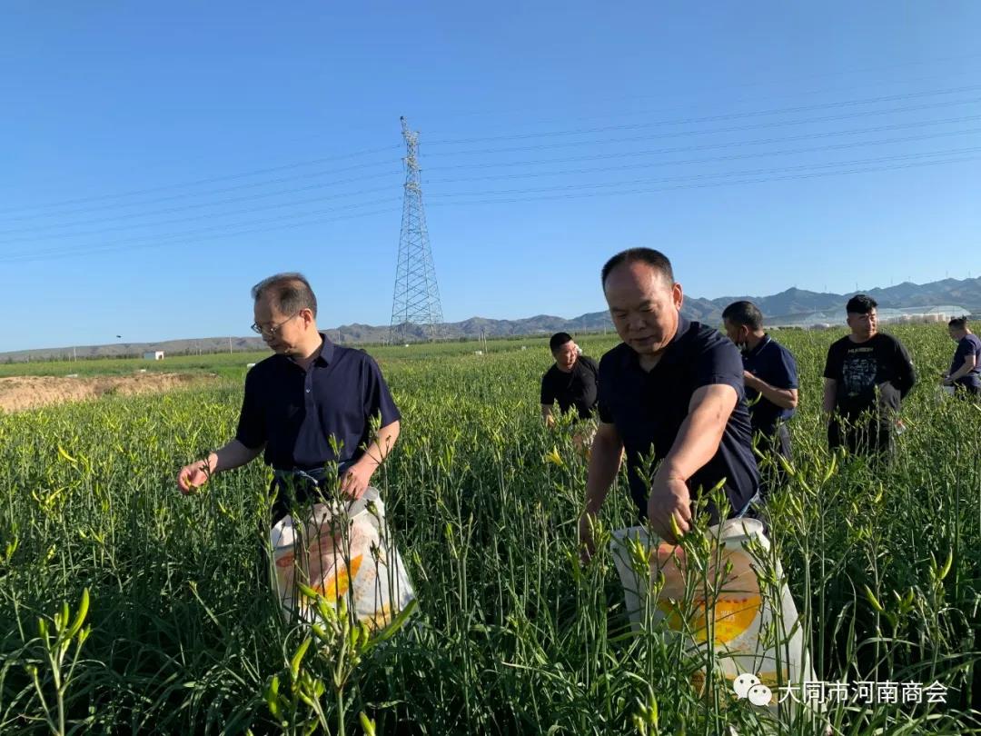 7月7日上午,大同市河南商会积极响应市委、市政府的号召,践行习近平总书记视察山西重要讲话重要指示精神,开展了“牢记总书记嘱托 助力农户富而忘忧”活动。参加本次活动的领导有市委统战部副部长、市工商联党组书记张团,市工商联党组成员、副主席王建平,云州区委统战部常务副部长常玉,市工商联组织会员科科长张艳霞。大同市河南商会会长位应征,书记代立军,秘书长杨如意,常务副会长陈继伟、刘扩建、郑中华、孟国彬、杭小于、韩现中、卢艳功、庄永超、李泊霆、刘海振、郑高伟、崔栋臣、年建文、马连营、郜军齐、麻进喜、高良超、侯喜明及家属一行40余人。
