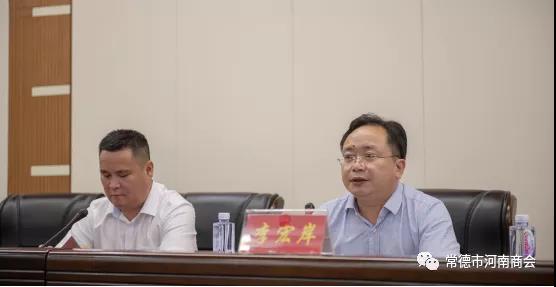 2020年7月29日,常德市河南商会第三届第一次会员代表大会在德华宾馆隆重召开。中共常德市委统战部副部长、市工商联党组书记李宏岸,市工商联党组成员、副主席黄明中,常德市工商联秘书长、会员经济联络科科长向寅军,市民政局社会组织管理科许为帅等出席了会议。