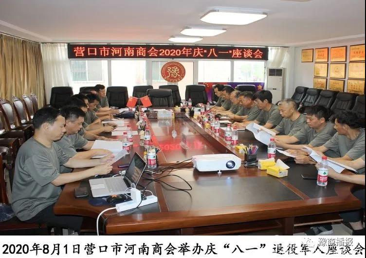 2020年8月1日,根据营口市拥军优属拥政爱民工作领导小组办公室《关于认真做好2020年“八一”期间拥军优属拥政爱民工作的通知》(营拥办发[2020]12号)要求,营口市河南商会召开2020年营口市河南商会拥军优属拥政爱民“八一”军人座谈会。