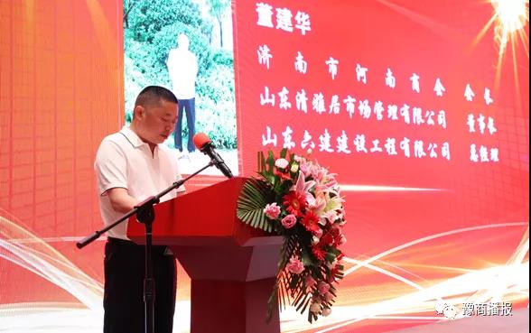 济南市工商联秘书长孙国栋,上台发表了讲话,对商会今后的发展提出了指导意见和建议。盛夏的泉城,荷红柳绿,生机勃发。值此济南市河南商会换届大会召开、开启商会发展新征程之际,我代表济南市工商联、济南总商会向换届大会的召开和新当选的董建华会长、新一届领导班子成员表示热烈的祝贺!向各位会员,并通过你们向广大在济投资兴业的河南籍人士表示诚挚的问候!向长期以来关心支持商会发展和工商联事业的有关部门、各界人士表示衷心的感谢!