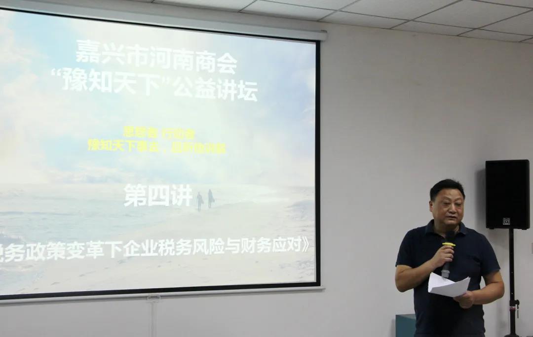 8月23日晚,“豫知天下”第四期公益讲坛在商会会议室举行,活动邀请会员单位嘉兴长财企业管理有限公司财务系统咨询师朱培源为大家带来“税务政策变革下企业税务风险与财务应对”的主题分享。活动由秘书长刘高宪主持。