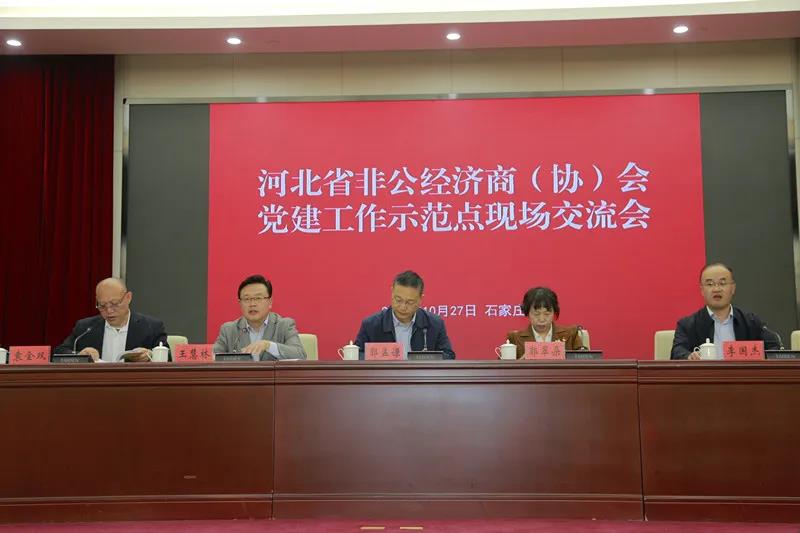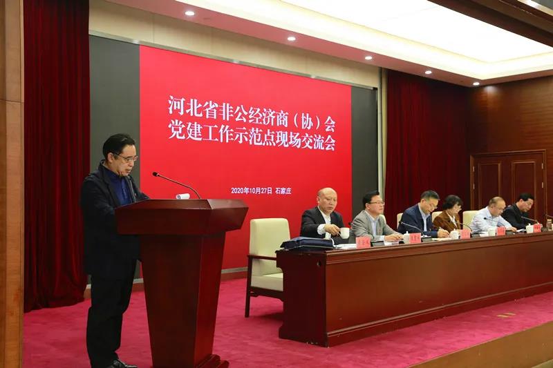 当天下午,郭孟谦副秘书长一行参加河北省非公有制经济商(协)会党委召开的党建工作示范点现场交流会。河北省委非公经济和社会组织工委副书记,省委统战部副部长,省工商联党组书记、常务副主席郭翠朵,河北省委组织部组织三处二级调研员李国杰出席会议并讲话。