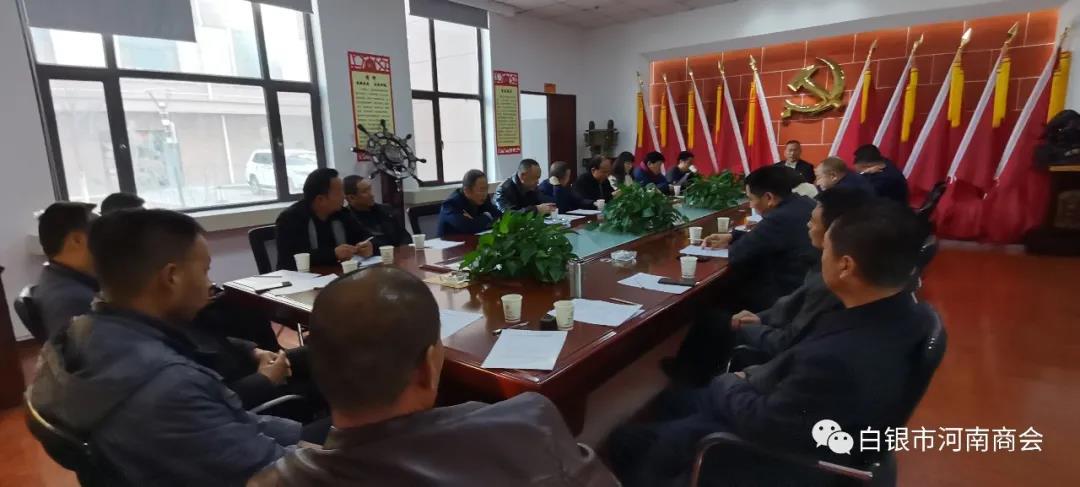 11月29日上午10点,白银市河南商会“学习党的十九届五中全会精神宣讲会”暨“白银市河南商会2020年度第三季度会长会议”,在白银市河南商会会议室召开。秘书长叶进京主持会议,党支部书记贾同兴组织领学了十九届五中全会公报。