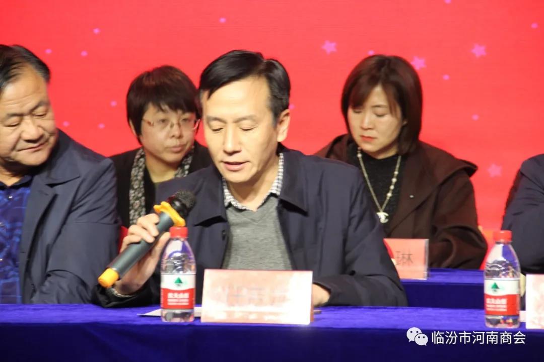 临汾市委统战部常务副部长任吉龙出席会议,并代表市委统战部、市工商联作重要讲话,市工商联党组成员、副主席曹焕成,商会名誉会长、原临汾市人大主任刘合心等领导出席了会议;荣誉会长、商会顾问、市直商会会长、秘书长以及社会各界人士等到会祝贺。 、临汾市市民政局、市工商联给与指导并祝贺,海内外 商会、驻晋河南商会等兄弟商会致电祝贺。