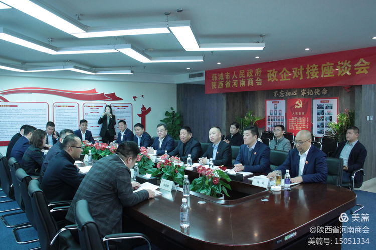 2021年3月10日上午,陕西省河南商会与韩城市人民政府政企对接座谈会在商会会议室举行。韩城市人民政府副市长雷哲,招商局副局长赵欣,经合中心副主任杨波等一行莅临商会出席了座谈会。