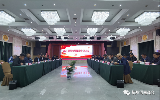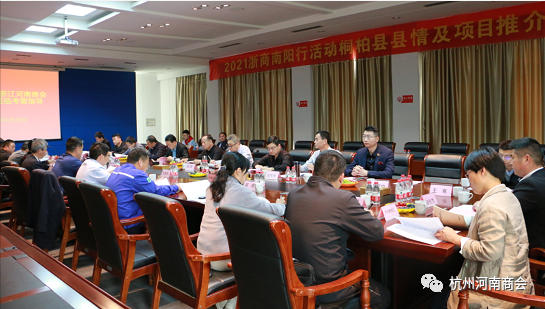考察团参观了4个县市产业集聚区,走访13家企业,进行了4场座谈交流会。邓州市委常委、常务副市长顾理代表邓州市委政府对考察团一行莅临邓州表示欢迎,邓州市政府党组成员程传平对邓州市情进行推介;淅川县委常委组织部长代表县委政府致辞,欢迎考察团一行考察淅川,副县长、产业集聚区主任崔改平对县情和产业集聚区进行了介绍;桐柏县长贾松啸前往宾馆欢迎考察团一行莅临桐柏,副县长王坡代表县委政府致辞欢迎考察团并介绍县情;考察最后一站座谈交流会上,南阳市政协副主席、南召县委书记刘永国介绍南召近年来高质量发展情况。市商务局局长司仁银对四天的考察活动进行了简要总结、向考察团介绍了“十四五”规划期间南阳商务发展方向和招商引资的侧重点,欢迎企业家们投资南阳,共享南阳经济发展成果,并表示市商务局将一如继往做好服务工作,搭好企业与地方政府的桥梁。市商务局二级调研员潘少峰、市创引办综合部部长方鹏程、信息部副部长郑凯、驻杭联络组全体成员和市开放办的同志全程陪同,并认真向大家介绍南阳的市场资源、产业政策、“十四五”产业招商重点。杭州河南商会执行会长王森(浙江省南阳商会会长)、党支部书记吴元伟分别做了交流发言,并对考察团提出了建设性的意见和建议。杭州河南商会副会长牛少勇、陈小飞、浙江省南阳商会副会长李洲也分别介绍了自己的研发项目,期待达成合作意向。杭州河南商会执行秘书长郑贵甫受杭州河南商会会长朱朝阳委托,对南阳市的热情接待表示衷心感谢,要求与会人员要深入学习各项招商政策,做好宣传河南、推介南阳的代言人,为南阳市的经济发展做出应有的贡献。