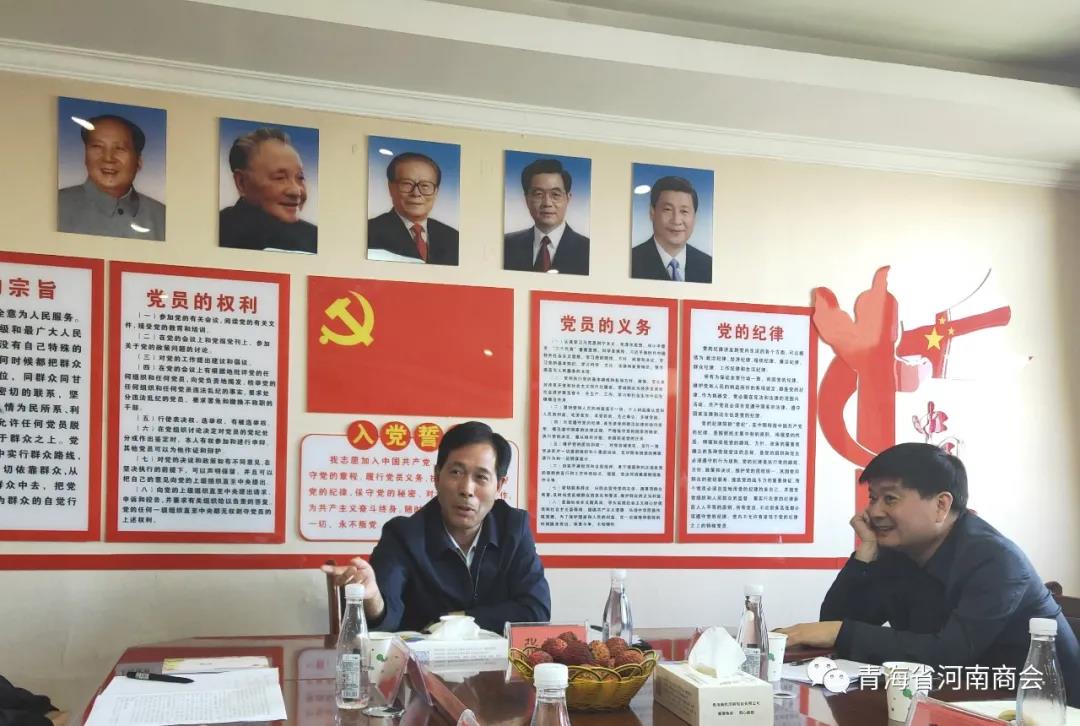 6月4日下午,青海省委统战部副部长、省工商联党组书记张文华,省工商联党组成员、秘书长罗顺邦一行莅临青海省河南商会调研、指导工作,会长刘强、党支部书记吕敬琦、监事会主席安红会、常务副会长李保民、余林涛、副会长徐全心、张传雷、马刚良、毛国闯、秘书长肖崇飞、党办主任薛鹏飞参加了座谈会。