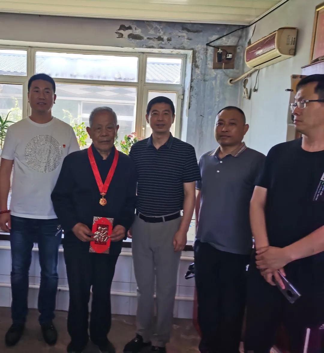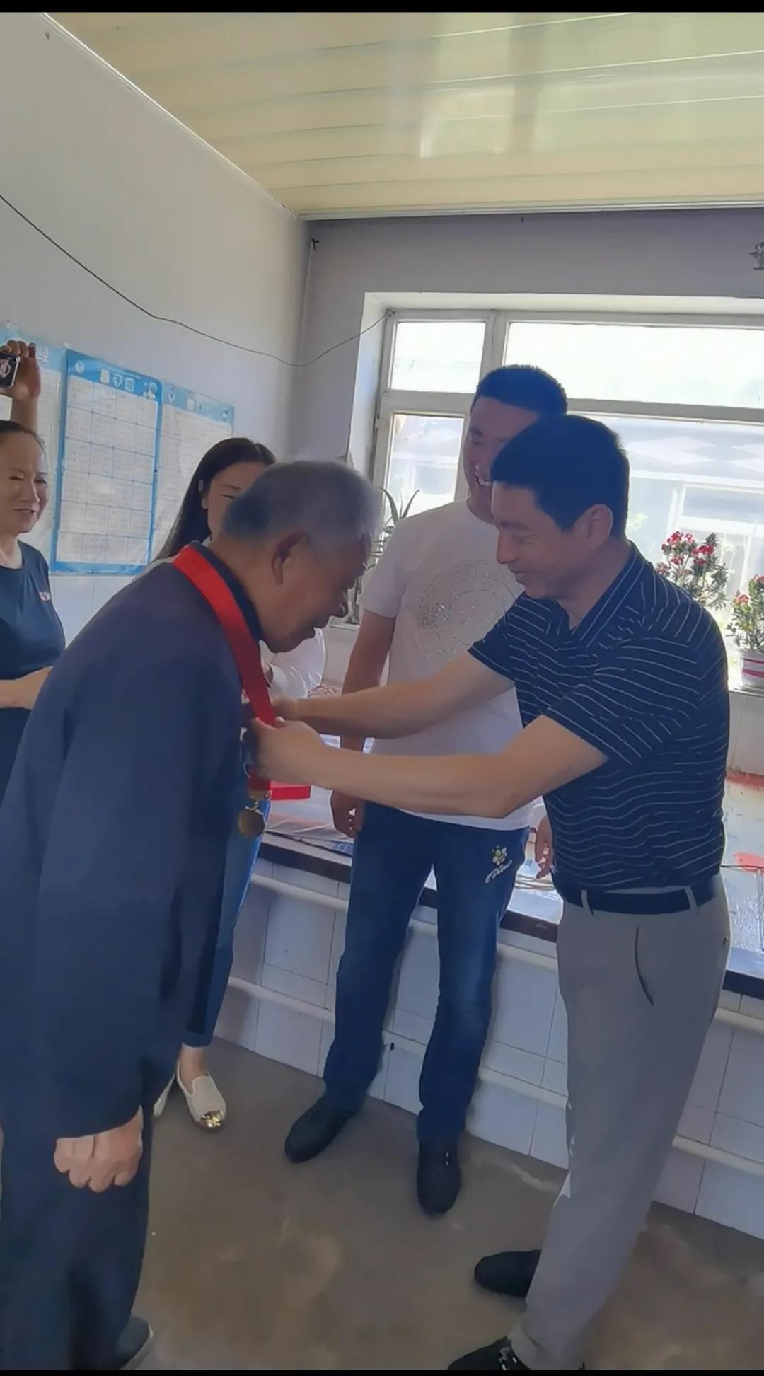 刘楠书记叮嘱他照顾好身体,感谢他为社会做出的贡献,并把中共中央颁发的在党50年奖章亲自给他戴上。老人家热泪盈眶,连声感谢党和国家的关怀、商会的关心和关爱。