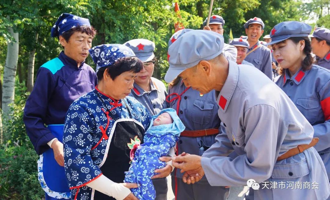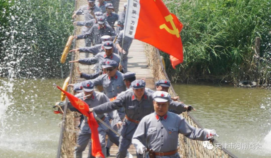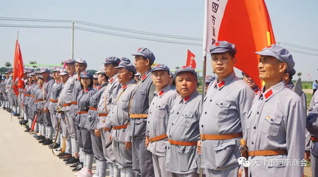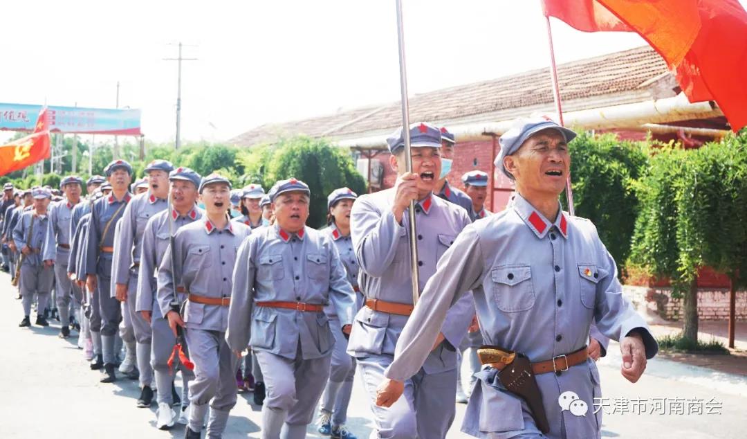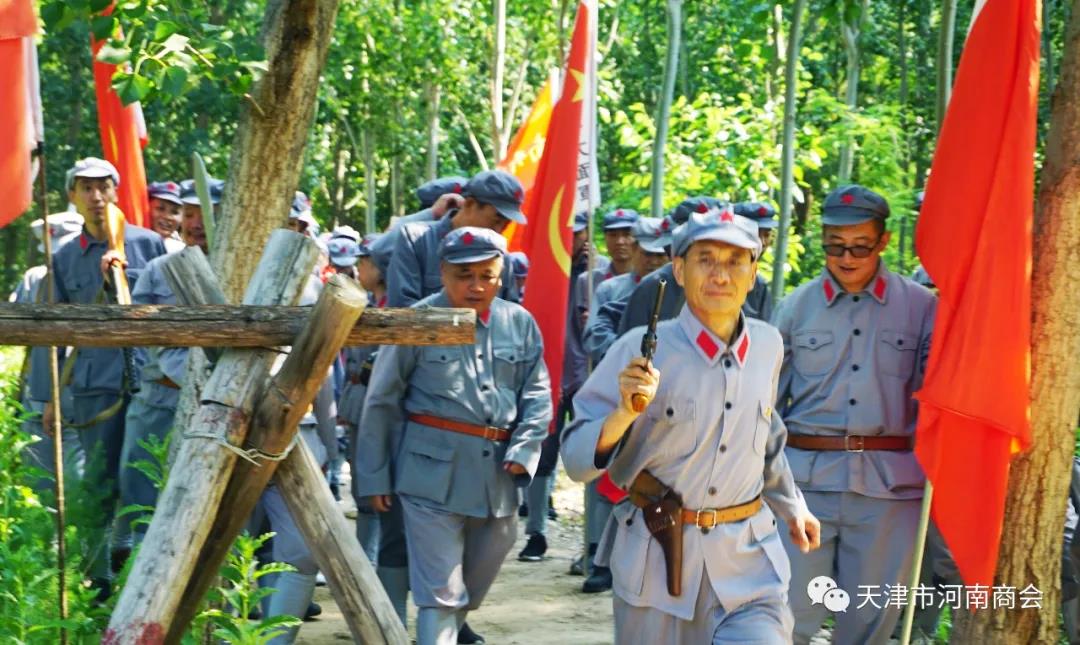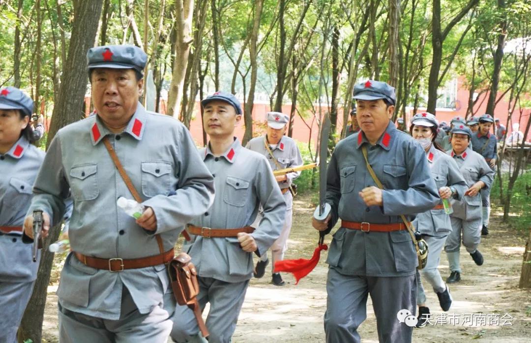 上午8点30分,参加活动的党员在天津市河南商会会长宋富锦、党支部书记孙文礼、人寿保险天津滨海新区中心支公司党支部书记孙秀萍的带领下,准时到达辛口镇第六埠村重走长征路红色教育基地。大家脱下便装,着上军装,带上武器装备,个个精神抖擞,斗志昂扬。