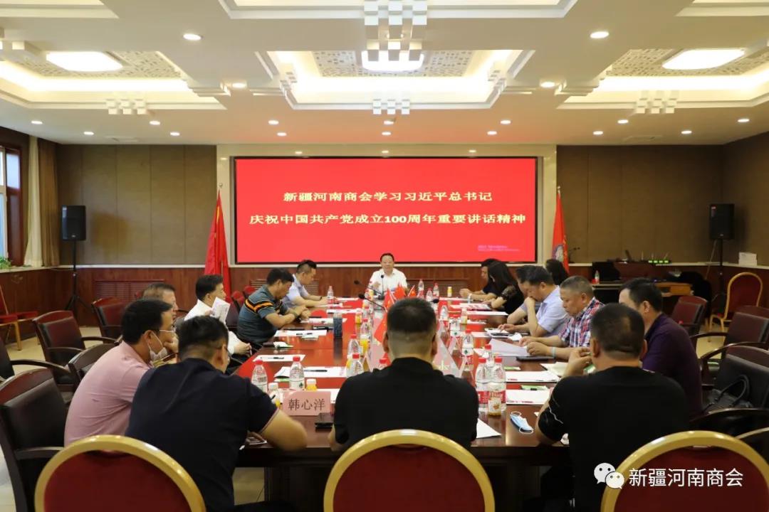 7月3日上午,新疆河南商会组织广大会员学习了习近平在庆祝中国共产党成立100周年大会上的讲话精神。