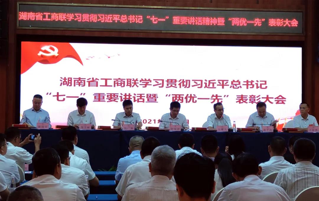 为庆祝伟大的中国共产党成立100周年,重温党的光辉历程,讴歌党的丰功伟业,表彰全联涌现出的先进基层党组织、优秀共产党员和优秀党务工作者,进一步激励动员全联各级党组织和广大党员不忘初心、砥砺奋进。2021年7月6日下午2:30湖南省工商联在神农大酒店召开了学习贯彻习近平总书记“七一”重要讲话精神暨“两优一先”表彰大会。湖南省河南商会党支部荣获“先进基层党组织”荣誉称号,商会执行会长靳会武、常务副会长张玉杰荣获“优秀共产党员”荣誉称号,秘书处刘晓凤荣获“优秀党务工作者”荣誉称号。