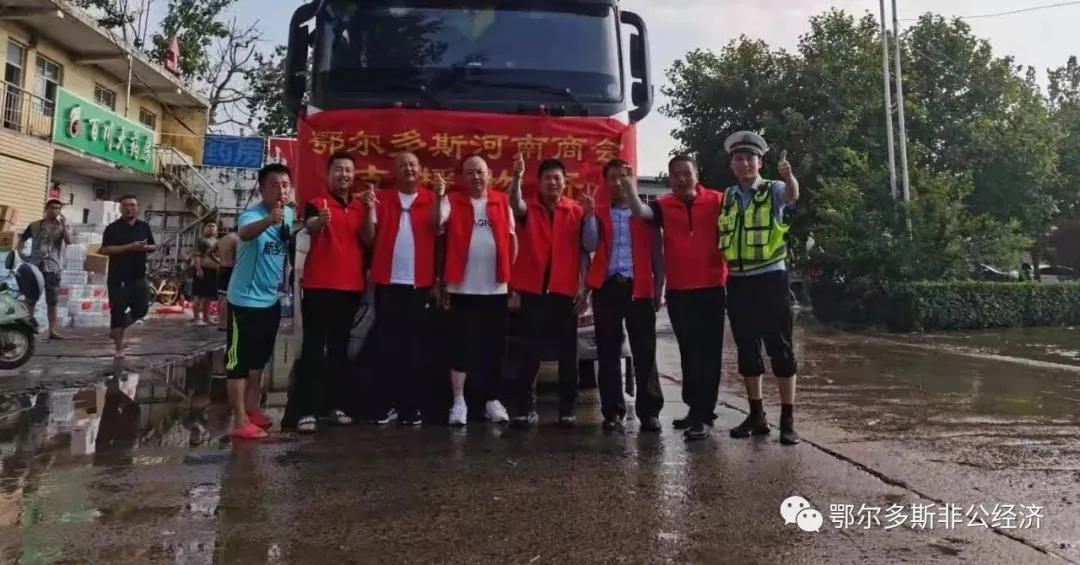 7月25日,在鄂尔多斯市河南商会的组织下,生活在鄂尔多斯市的河南籍老乡积极捐款捐物,从鄂尔多斯市购买牛奶、方便面、矿泉水、消毒液等价值20多万元的赈灾紧缺物资运往河南省新乡、安阳两市。