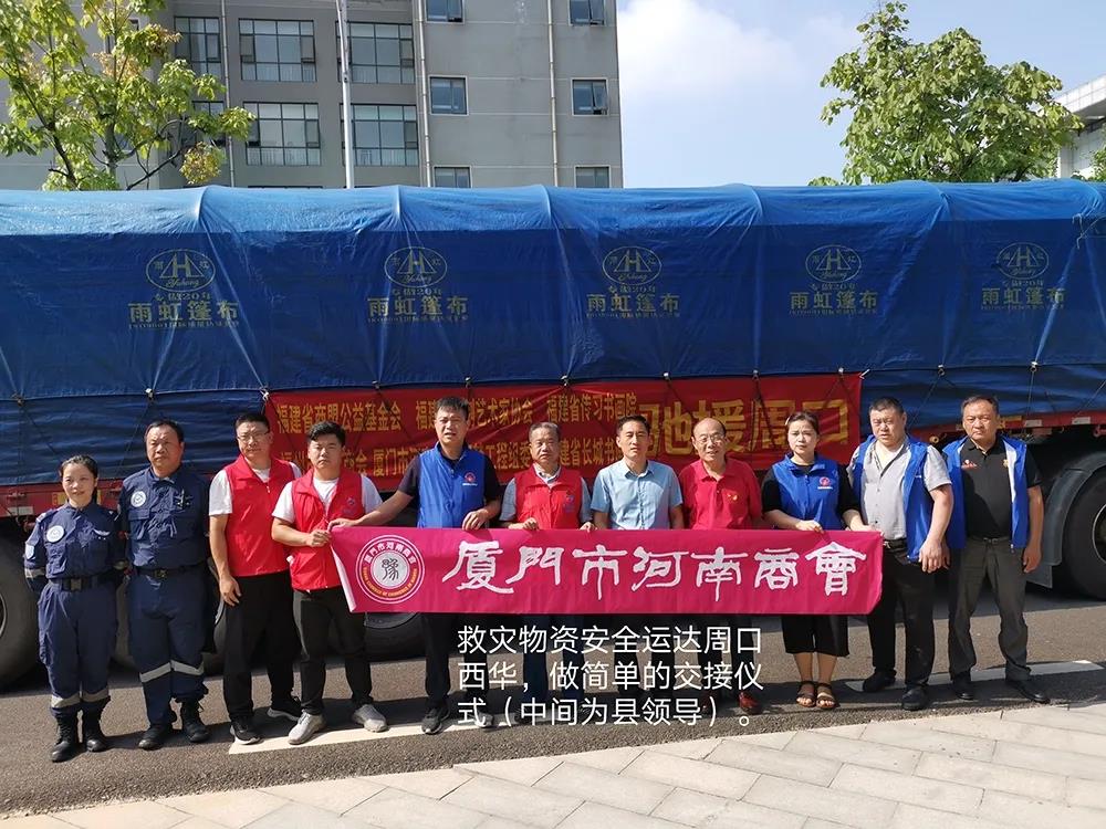 厦门市河南商会、福州市河南商会联合福建省商盟公益基金会、圆梦工程组委会、福建省雕刻艺术家协会等驰援河南,7月25日凌晨2:00抵达第一站周口西华县,捐赠25吨应急物资。