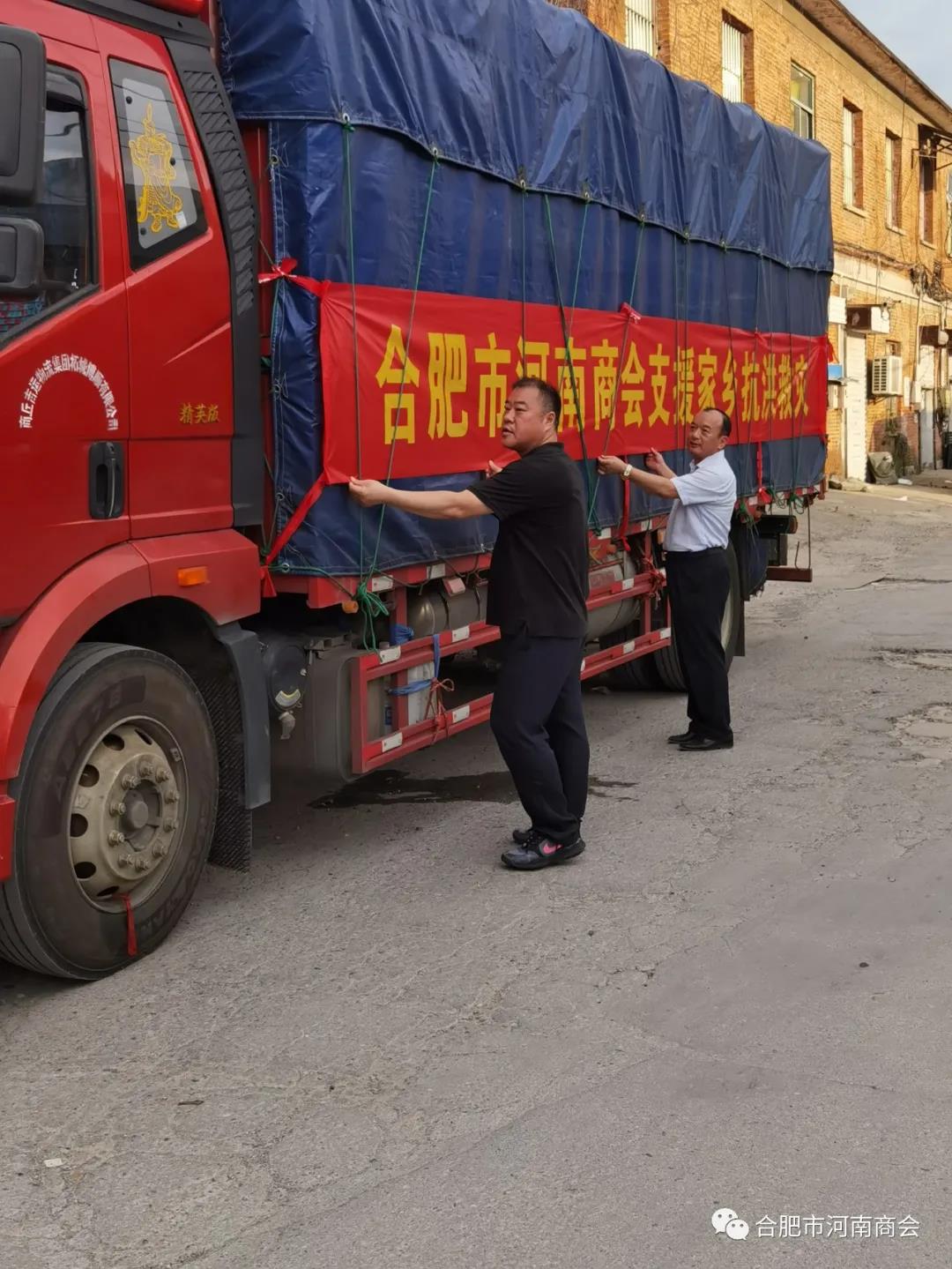 合肥市河南商会会员单位纷纷解囊,倾情相助,很快筹集到一大车物资,并委派专人送往周口扶沟。