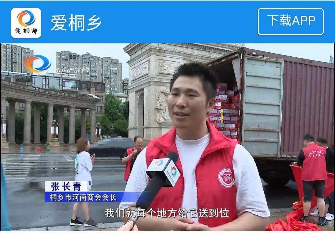 7月23日,浙江省桐乡市河商会领导召开紧急会议,经过短暂的商议,发出《赈灾捐款倡议书》。来自桐乡各行各业的河南老乡们纷纷慷慨解囊,商会于第一时间采购了各类救灾物资,饮用水、泡面、消毒用品、救生衣、医用药品等。24日中午,张长青带领13名商会会员组成的赈灾小组将总价值20多万元的物资清点、打包、装车,紧急运往重灾区,驰援家乡救灾。