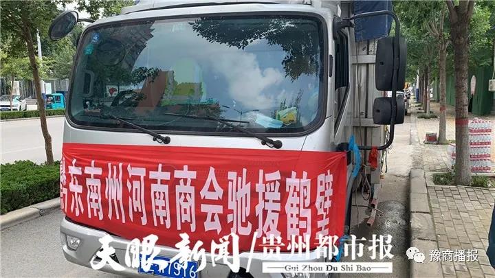 7月26日上午,黔东南州河南商会用会员捐赠的爱心捐款,在河南滑县采购了方便面、矿泉水、冰红茶、牛奶等物资后直接运往鹤壁灾区。