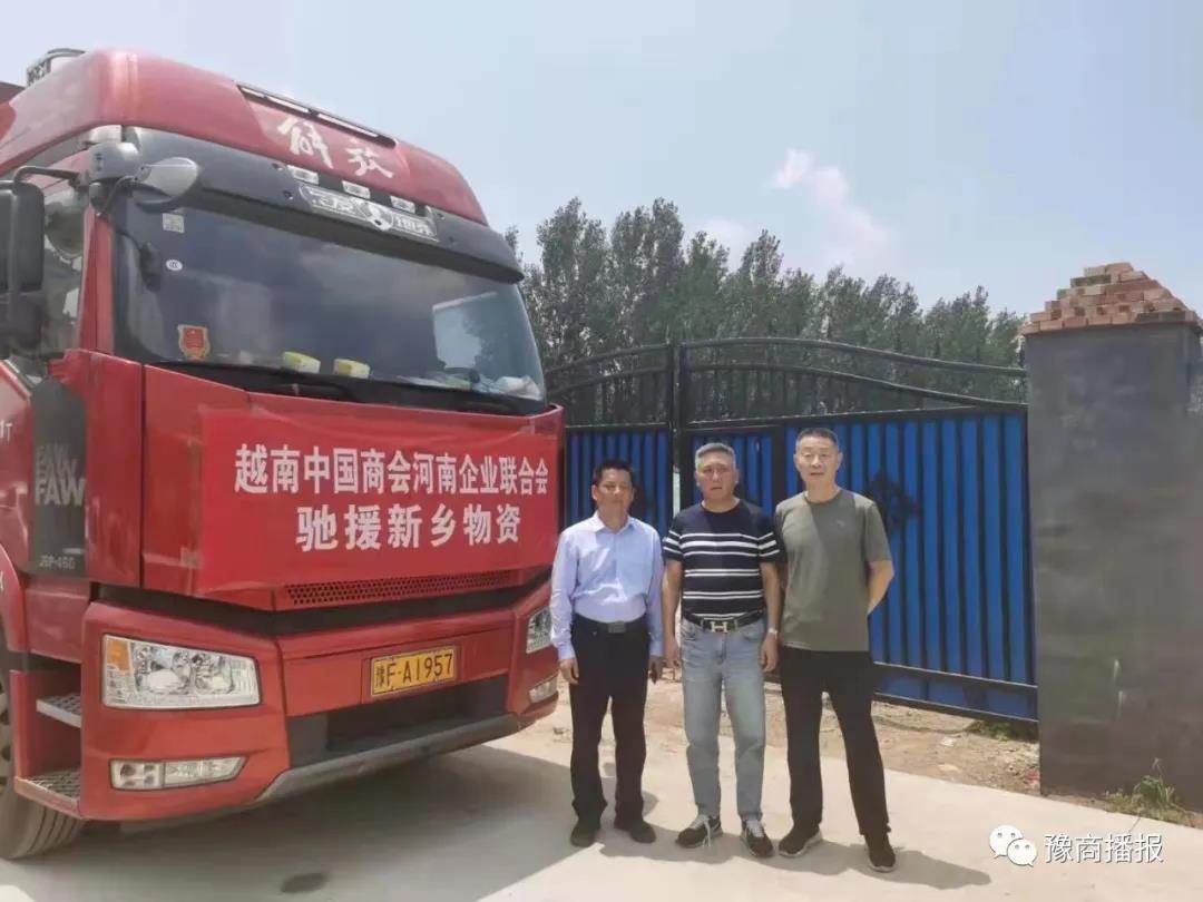 7月22-23日仅用两天时间,越南河南商会共收到来自各界爱心人士的善款,总计约¥320,000,购买的矿泉水2160箱、面条20吨、面粉:15吨、大米:10吨、5L桶装油:300箱(一箱四提)、方便面980箱(一箱12桶)等救灾物资,已由商会李会长李志带队分别从湖北和信阳,连夜亲赴抗洪第一线。 25日早上交到灾区父老乡亲手中。