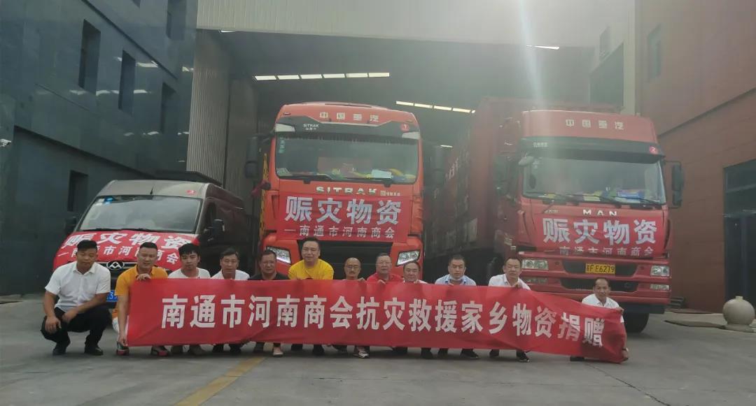 7月22日,南通市河南商会秘书处发出《风“豫”同“州”、“豫”难而上》—给全体会员及在通豫籍老乡的倡议信。动员在通河南人行动起来捐款捐物帮助家乡父老渡难关。7月24日夜,商会派专人护送总价值约15万元的物资星夜赶路赴河南周口西华娲城街道和田口乡,将救援物资送到当地的安置中心。