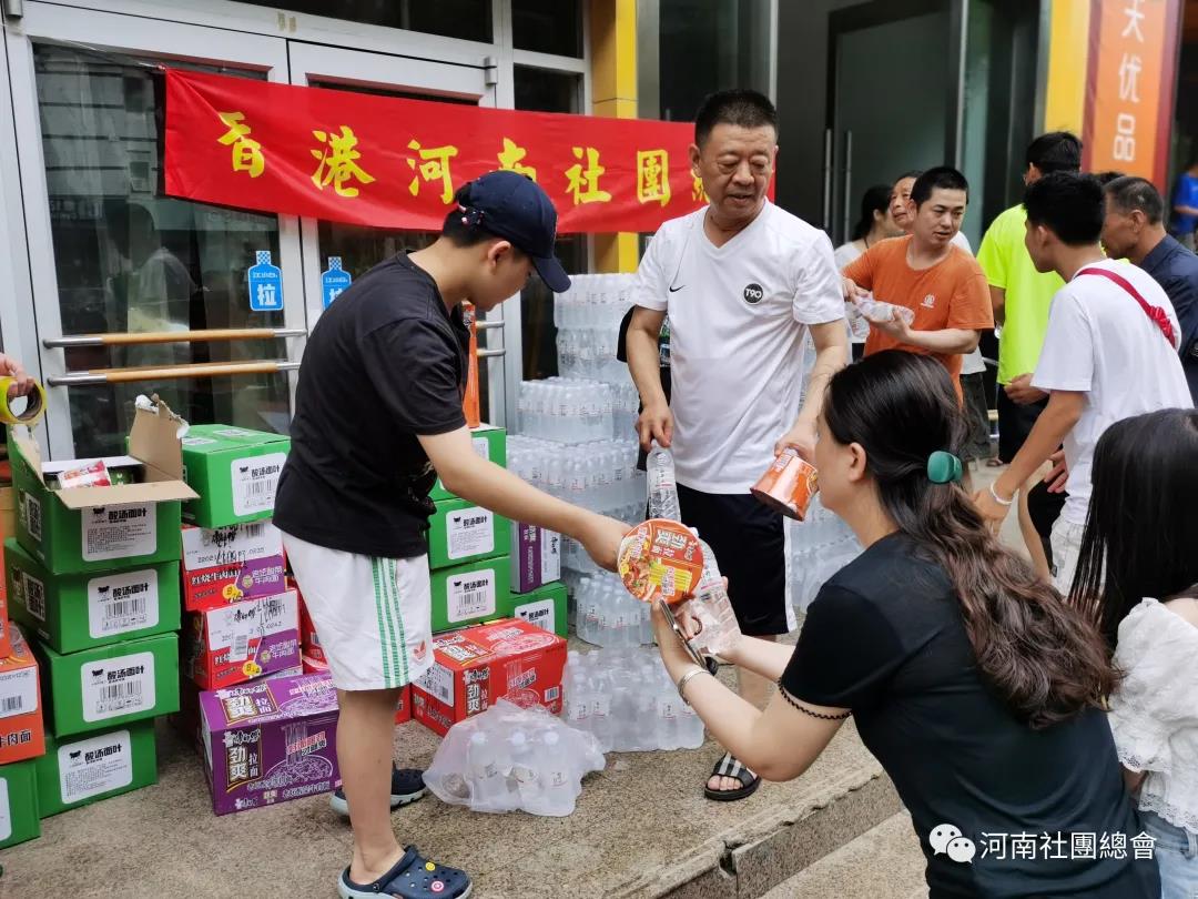 为支持河南抗洪救灾,香港河南社团总会发起——“豫”您同在,总会“郑”在行动公益专案活动,共同捐款购买食品饮料等物资,发放给停水停电的家乡社区。
