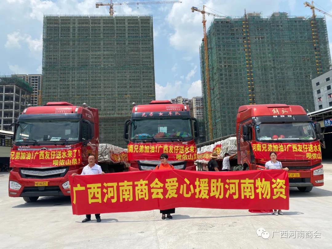 7月27日上午,广西河南商会对故乡水灾的首批捐款捐物工作顺利完成。其中,广西河南商会捐助的30.6万元善款转至河南省慈善总会,装满救灾物资的三辆大卡车也启动前往河南灾区。