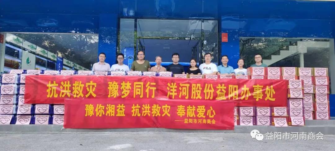 7月24日晚,一辆13.5米的大货车装着益阳市河南商会募集的4800盒自热米饭、900件瓶装水、100件饼干、200件面包和若干方便面,浴巾、毛毯、衣物、帐篷、药品、口罩若干等物资(总价值达9.3万元),从益阳连夜出发奔赴河南卫辉市孙杏村镇,送到一线受灾群众手中,有效缓解了被困人员的饮食难问题。