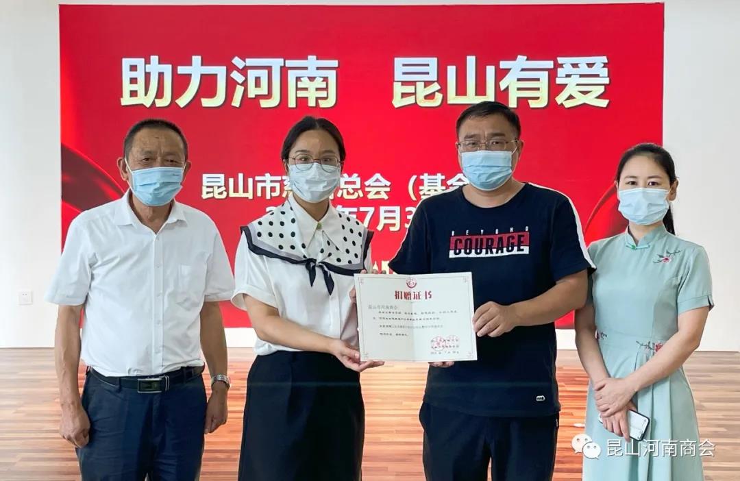 截止7月26日17:00,昆山市河南商会共收到来自会员的善款109500元。目前,已全部捐至昆山市慈善总会。当洪灾发生时,商会党支部书记范德贵第一时间赶赴河南扶沟县小岗杨村送去善款7万元。商会副会长石昌进单位江苏圣源复信息科技有限公司捐款50万元至昆山市红十字会,个人捐款5000元至河南省慈善总会。在这抗洪救灾期间,商会余昌权、陶阳照等第一时间奔赴河南,参加抗灾救援突击队,日夜奋战在抗洪救灾第一线。