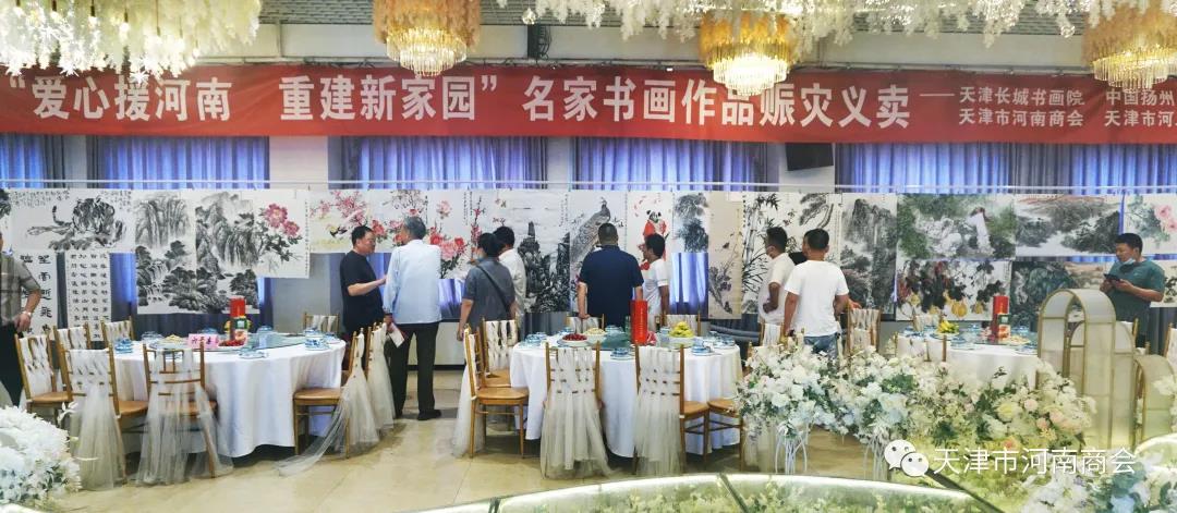 7月31日上午,由天津市河南商会联合天津长城书画院等单位共同举办“爱心援河南 重建新家园 ”名家书画作品赈灾义卖活动在天津东方之珠大酒店举行。
