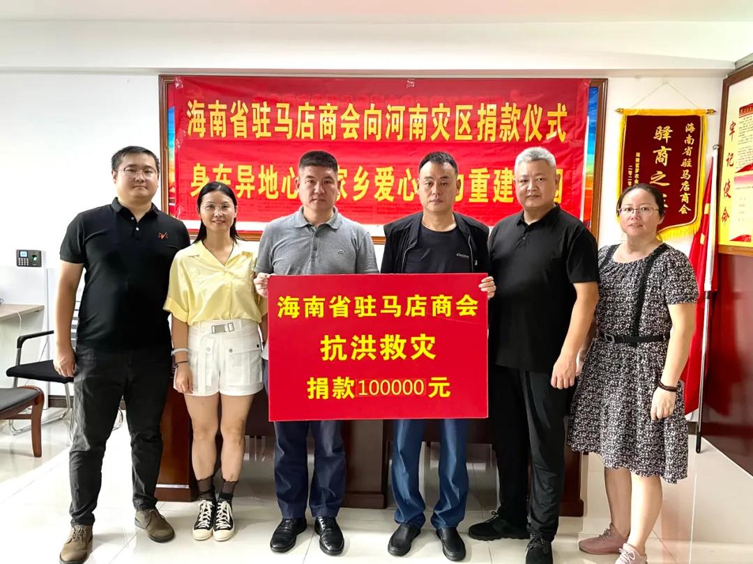 7月30日,海南省驻马店商会举行捐款仪式,并将筹得的善款10万元转到河南省慈善总会指定账户,用于河南家乡抗洪救灾。