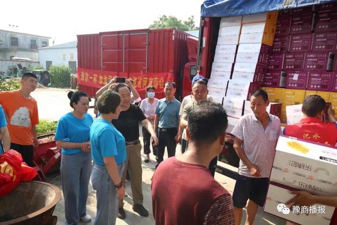7月24日,河北省河南从业人员促进会将1200件饮用水、1200件方便面等物资,由商会会长带队送达周口的西华县和扶沟县等灾区。