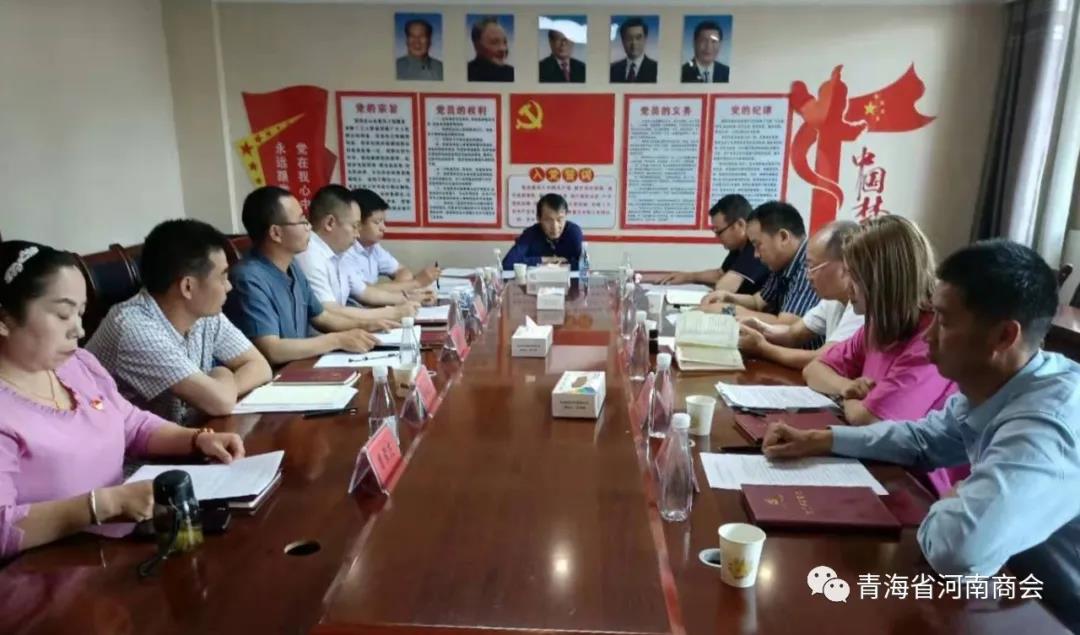 2021年8月12日下午,青海省河南商会党支部在商会党员活动室召开党史学习教育专题组织生活会,省工商联党组成员、副主席章海英、中共青海省工商联社会组织委员会委员、省工商联宣教部部长裴永红列席会议进行指导。会议由商会党支部书记吕敬琦主持。